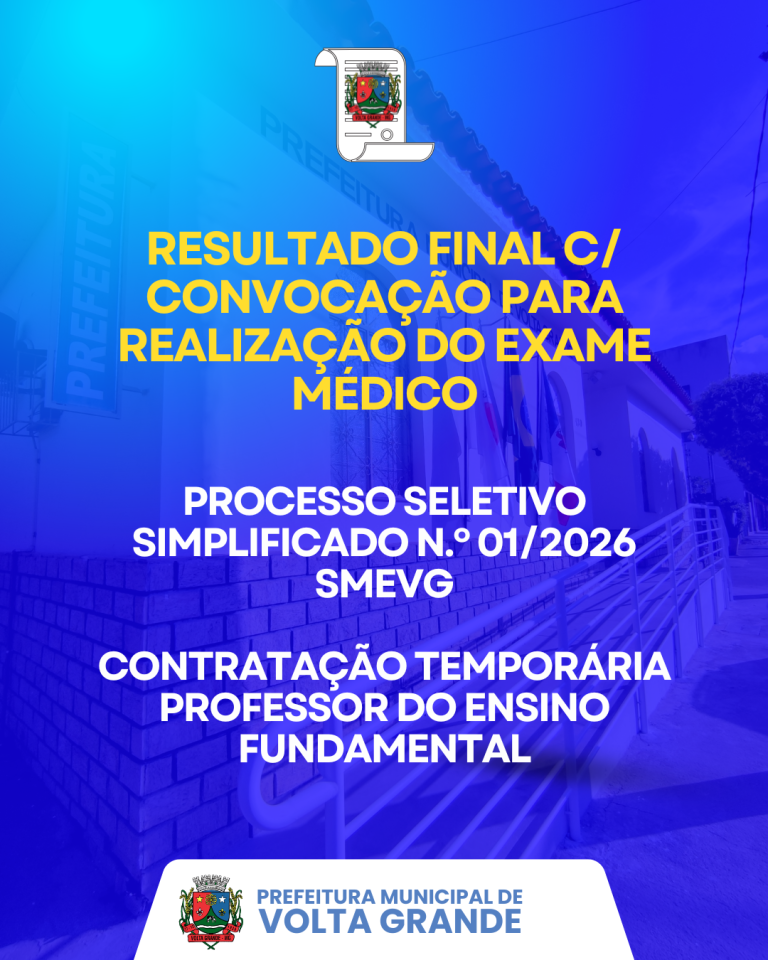 Resultado Final c/convocação para realização do Exame Médico – Edital Nº 01/2026/SMEVG